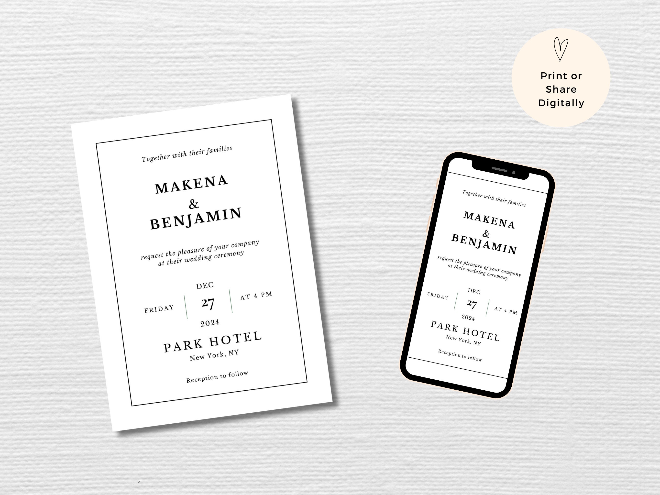 Modern Wedding Invitation Set Classic Black and White Elegant Etsy